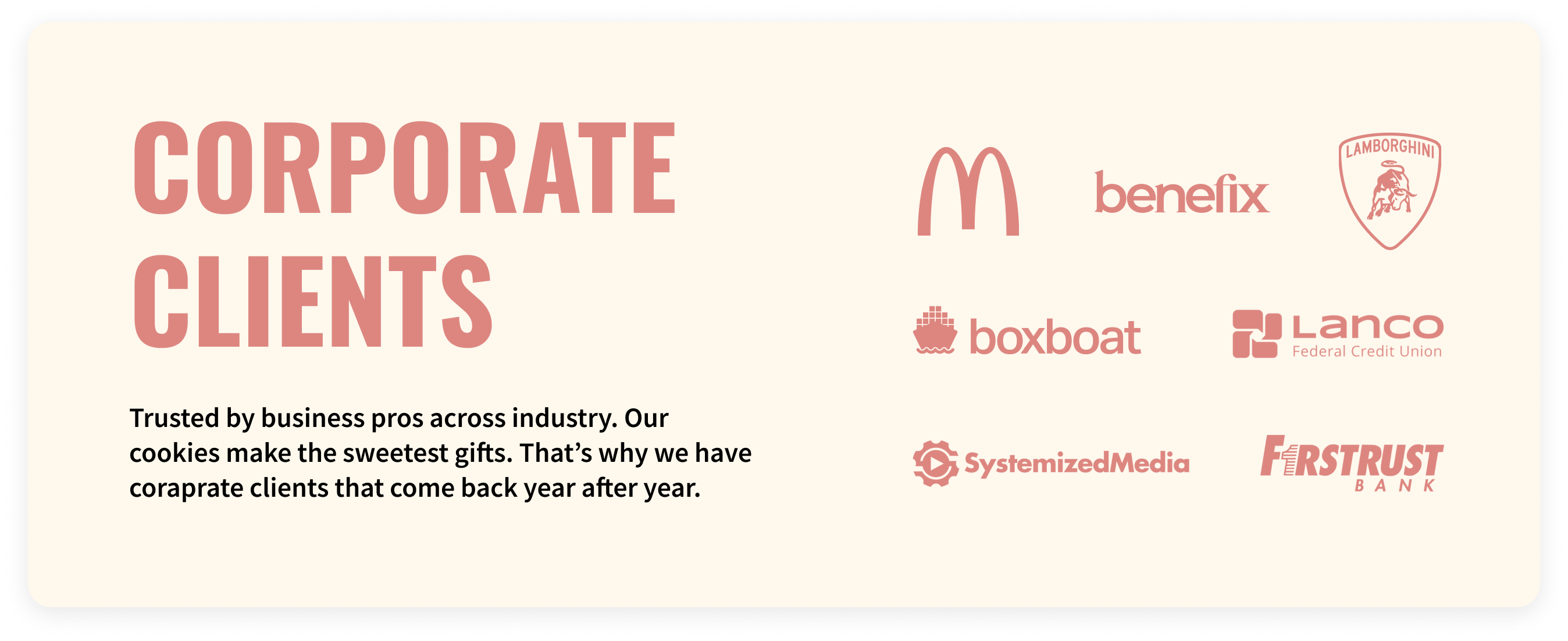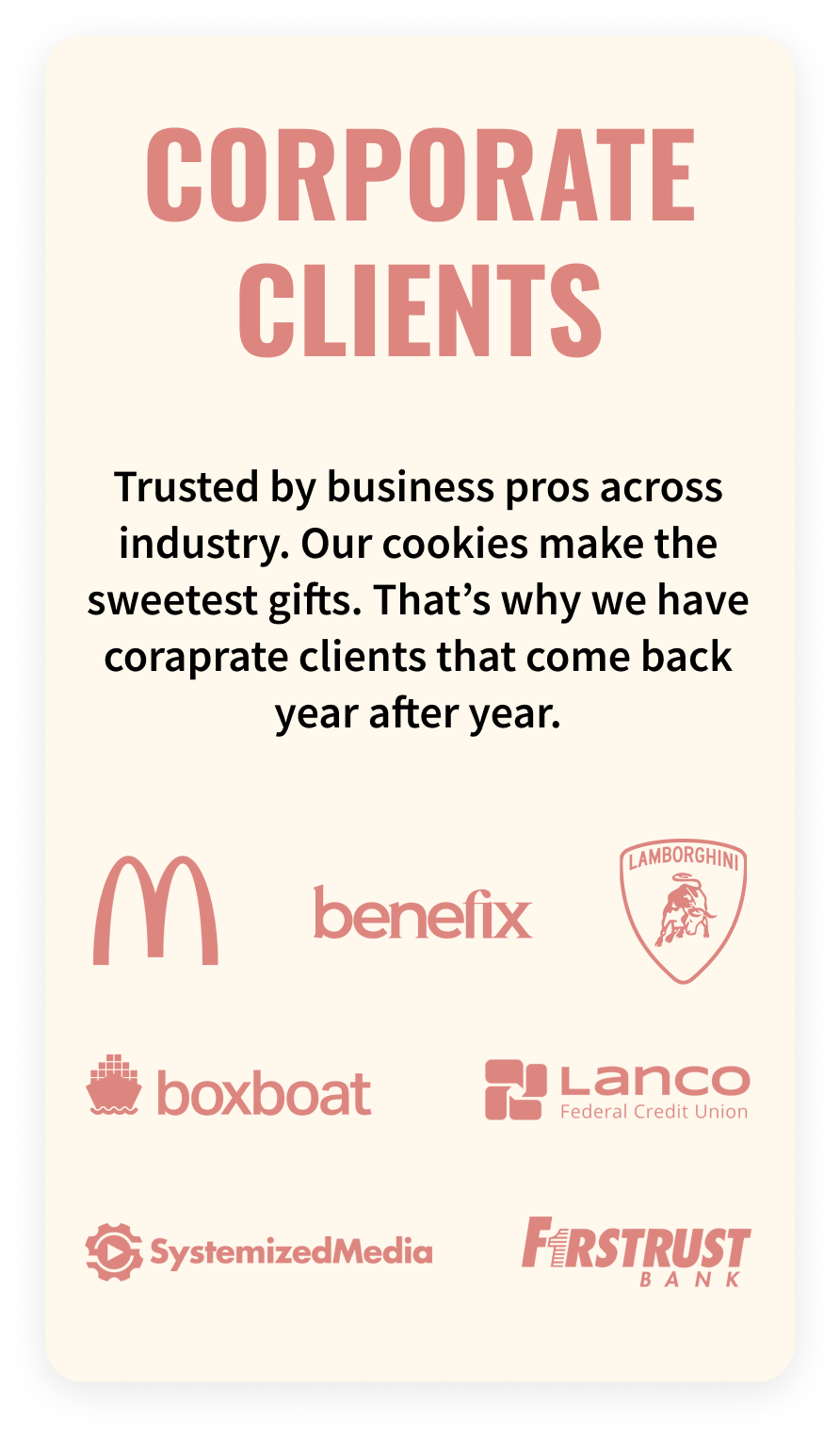 • Client Onboarding: Welcome new clients with branded cookies, leaving a sweet first impression.