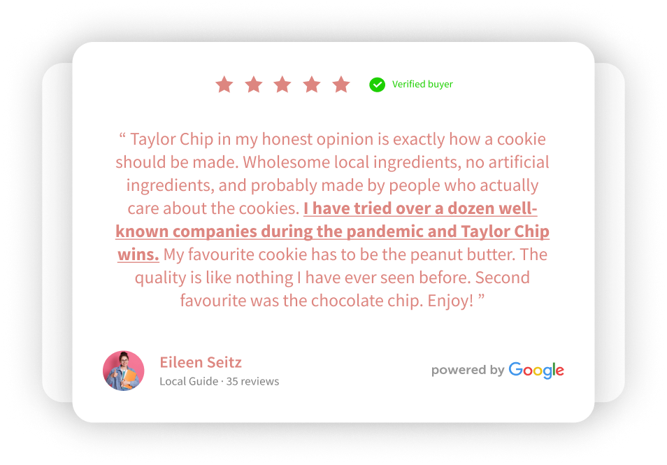Here at Taylor Chip, We're REAL cookie people and it took us over 1 & 1/2 YEARS to Perfect our Chocolate Chip.